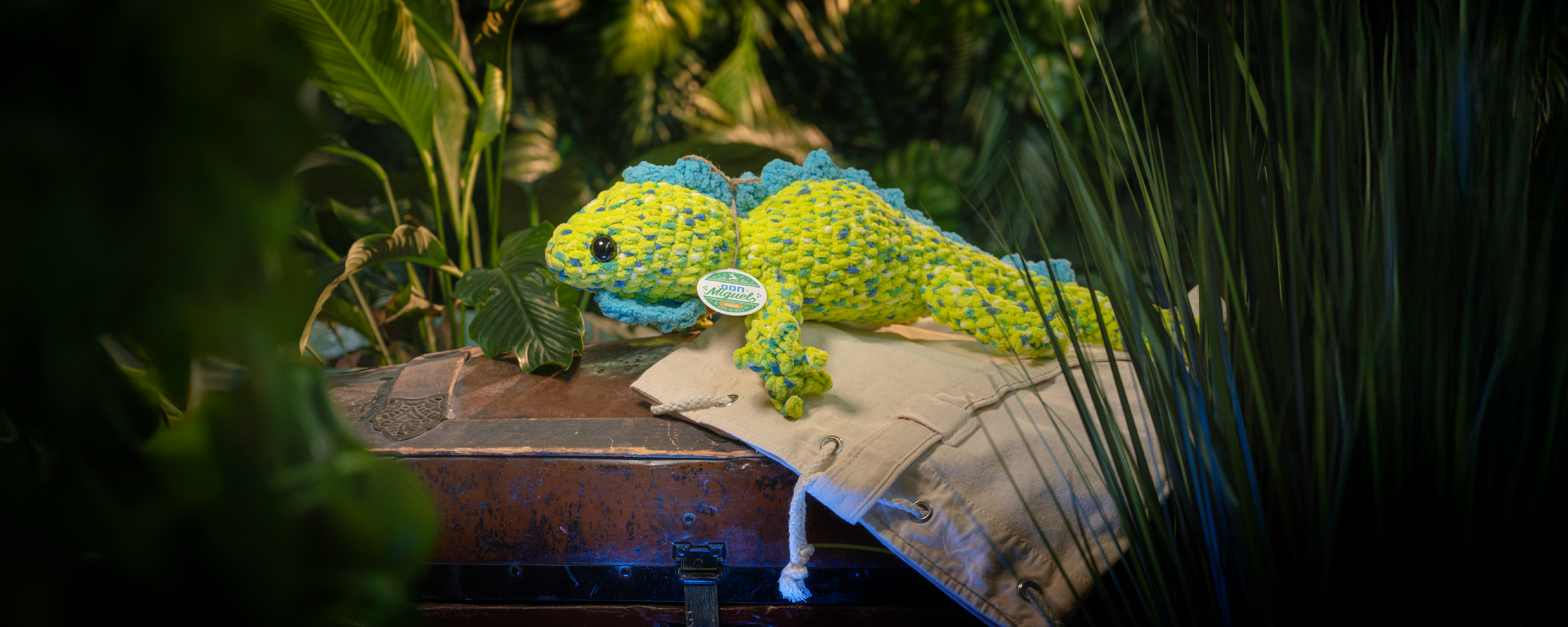 MMO's mascot at the Concourse is a beautiful green iguana known as Don Miguel. Known for his love of strawberries and hatred of walking on a leash, this dignified reptile delights all who visit our headquarters. Now, courtesy of one of our beloved team members, you can take your own Don Miguel plushie home–because we have found these way more fun to cuddle than the original.